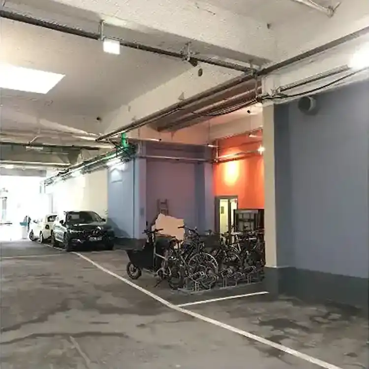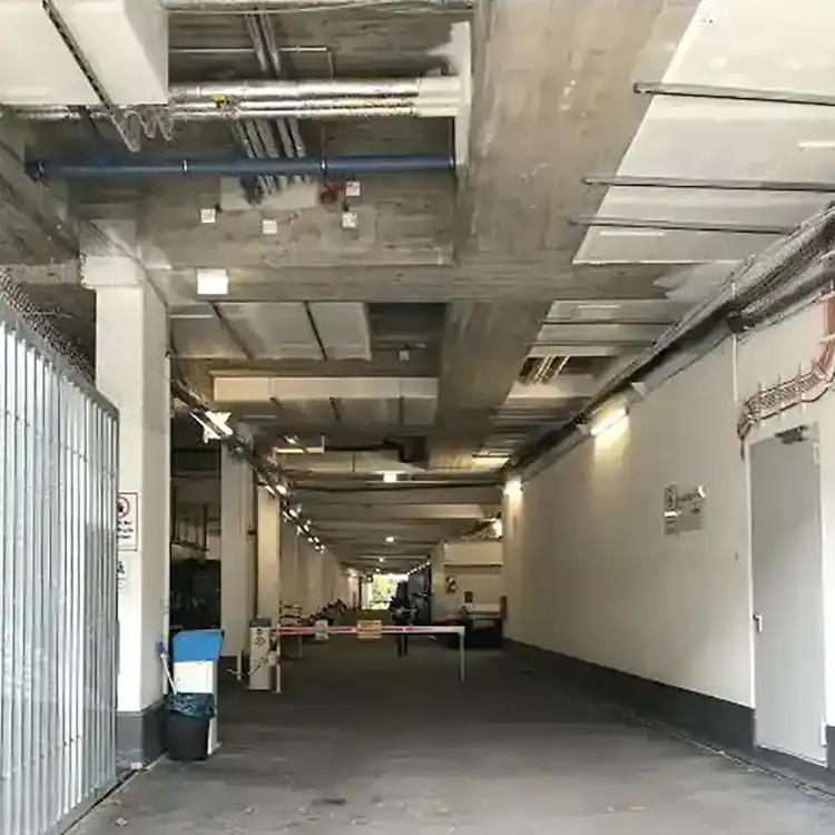 Geh dann direkt neben dem HONG KONG MARKET in die Einfahrt mit der Schranke.